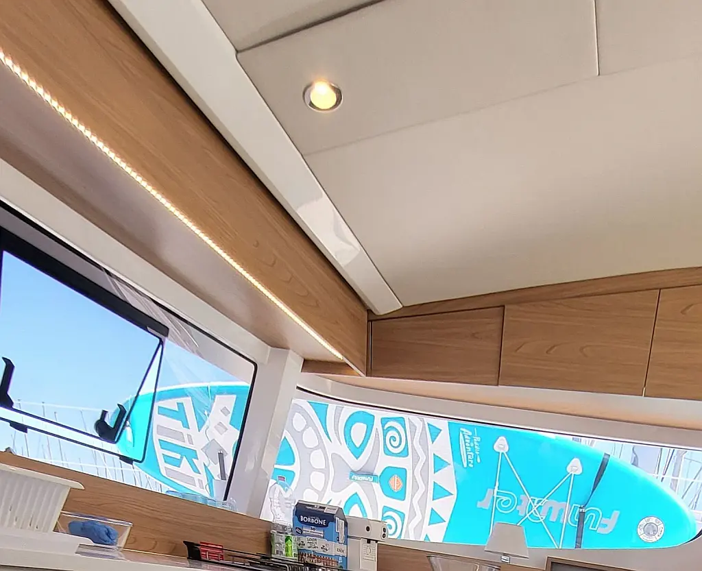 Cockpit cushions, Dinghy, Electric winches, Electric toilet, Coffee maker, Refrigerator, Inverter, Solar Panels, Teak Cockpit, Water maker