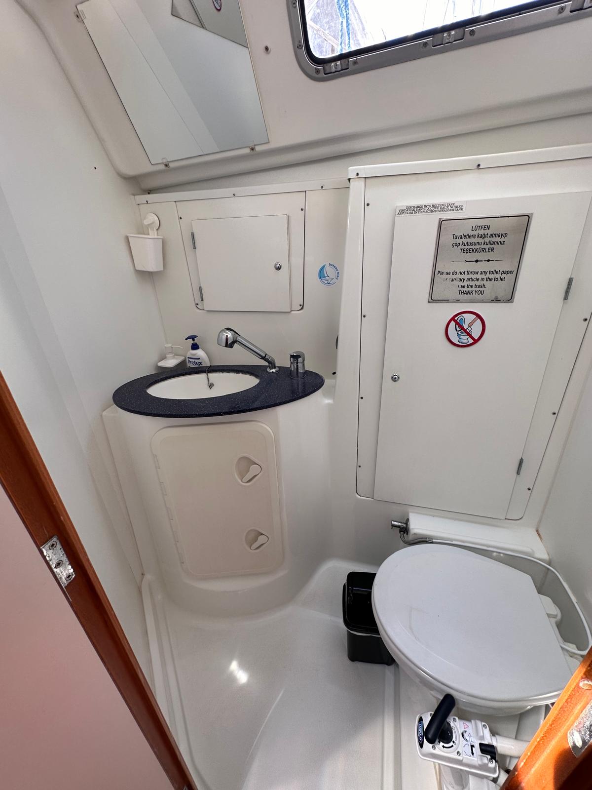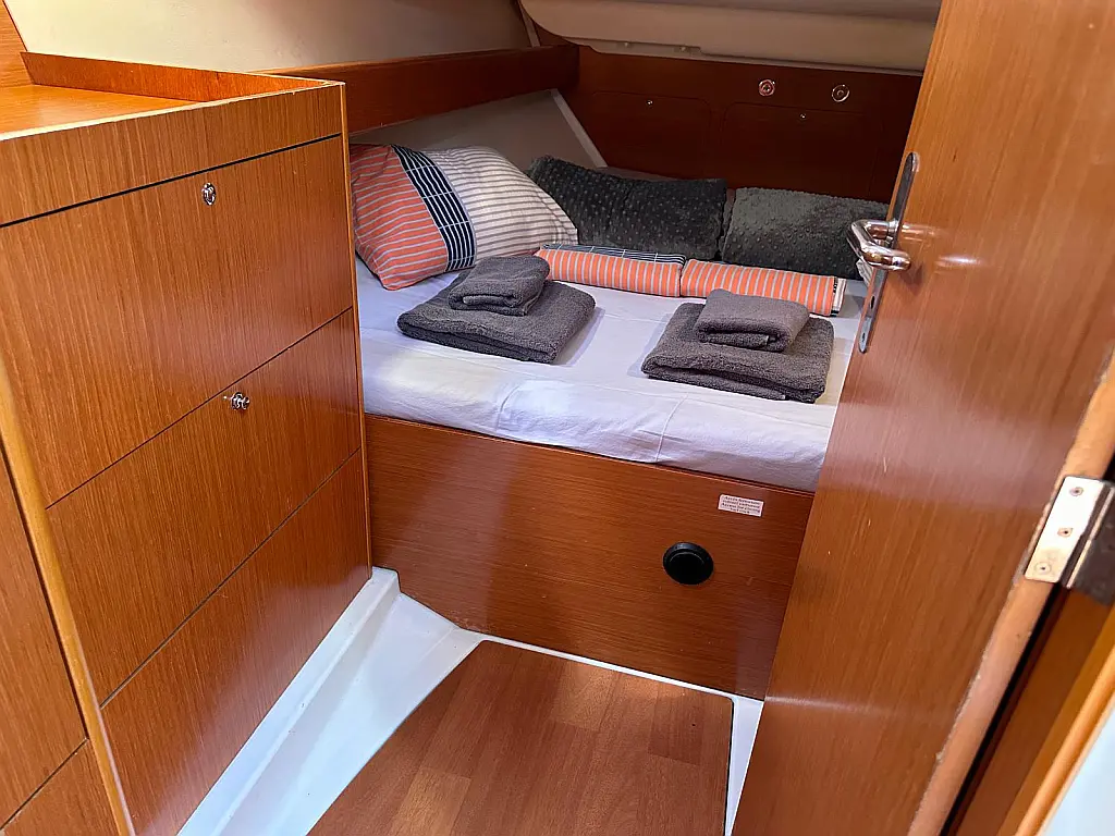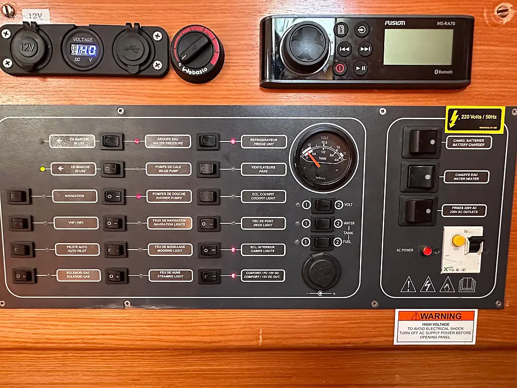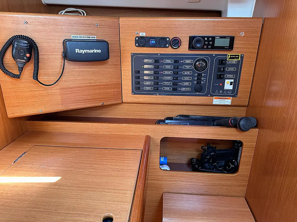 Bimini, Cockpit cushions, Dinghy, Sprayhood, Swimming platform, Outboard engine, Holding tank, Inverter, Solar Panels, Heating, Cockpit speakers, Refrigerator
