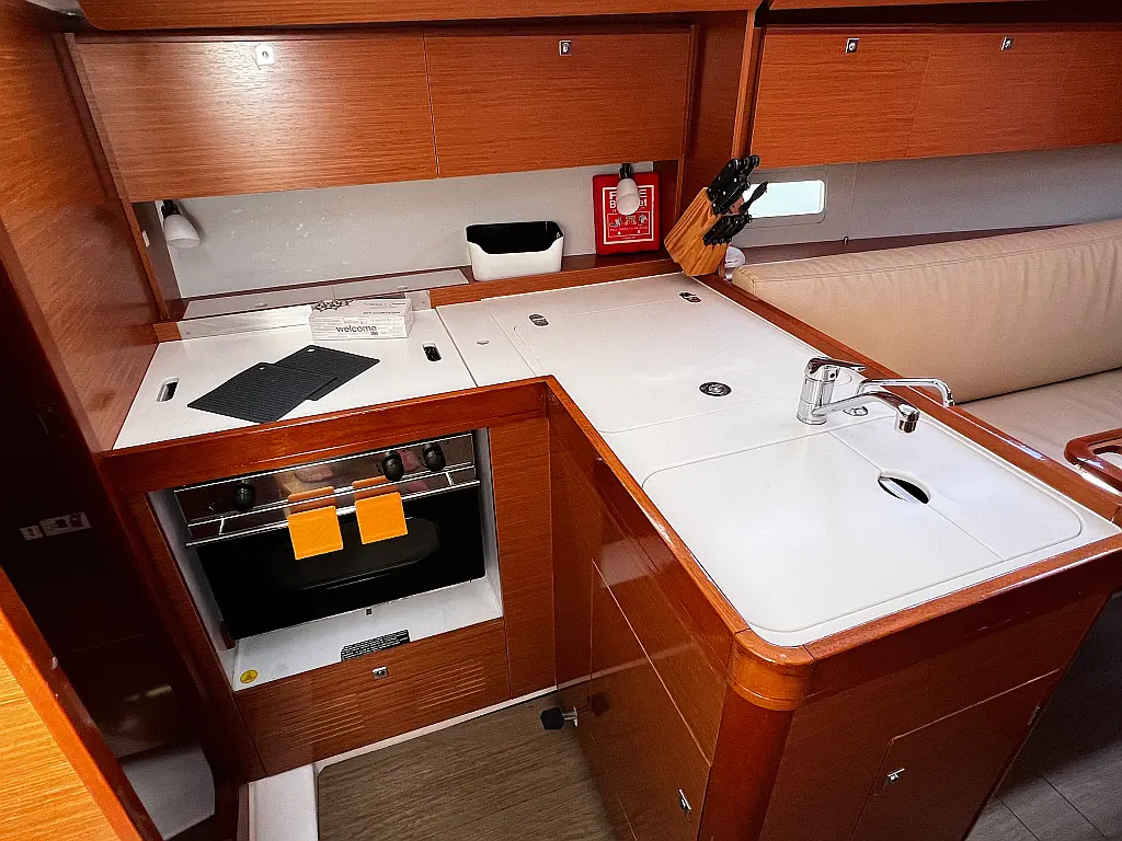 Cockpit cushions, Barbecue grill in cockpit, Teak Cockpit, Electric toilet, Refrigerator, Hydraulic gangway, Inverter, Swimming platform, Solar Panels