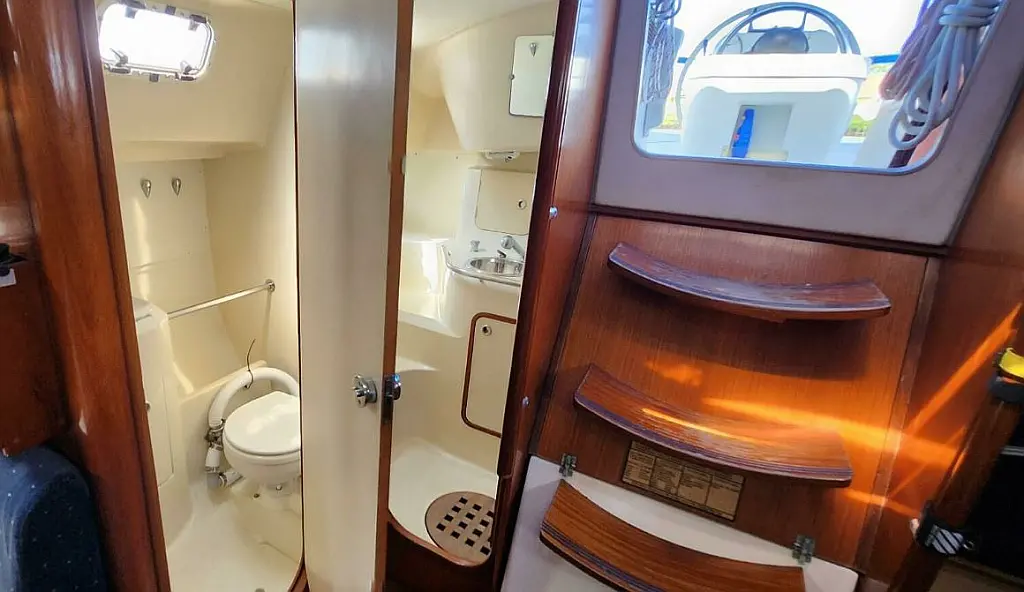 Bimini, Refrigerator, Outboard engine, Solar Panels, Electric toilet, Inverter