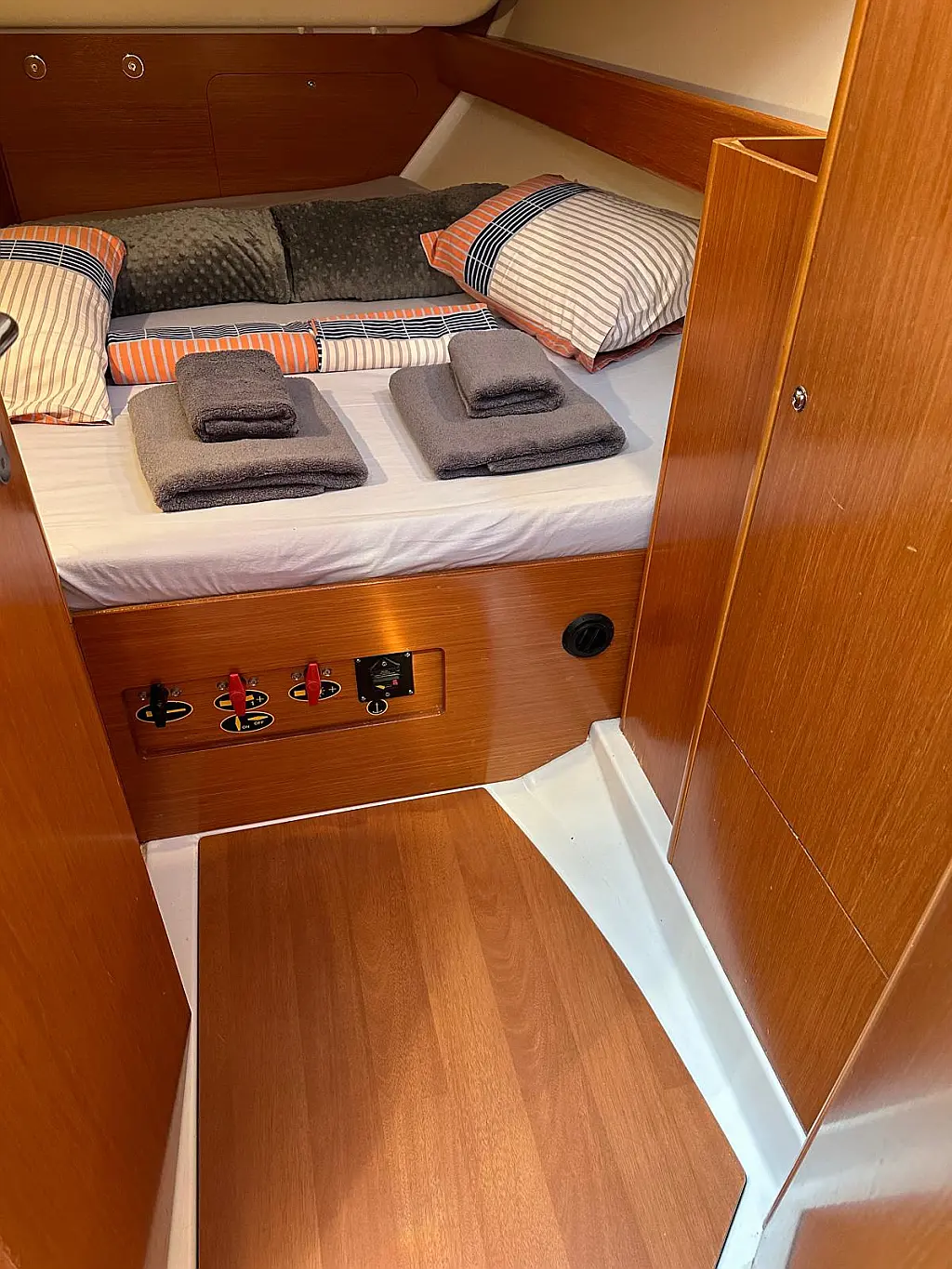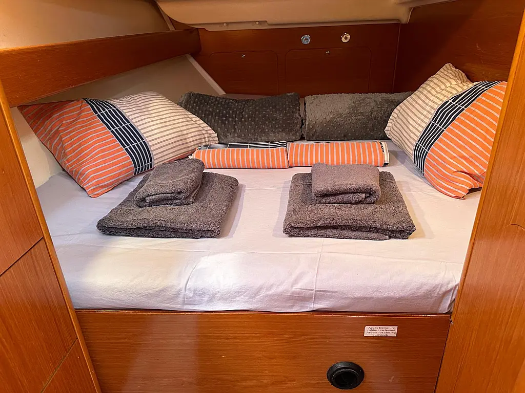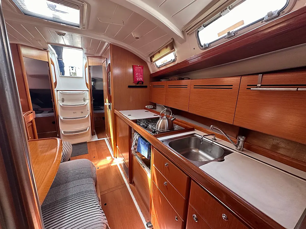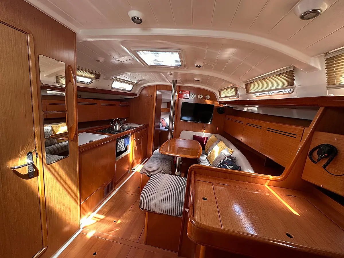 Bimini, Cockpit cushions, Dinghy, Sprayhood, Swimming platform, Outboard engine, Holding tank, Inverter, Solar Panels, Heating, Cockpit speakers, Refrigerator