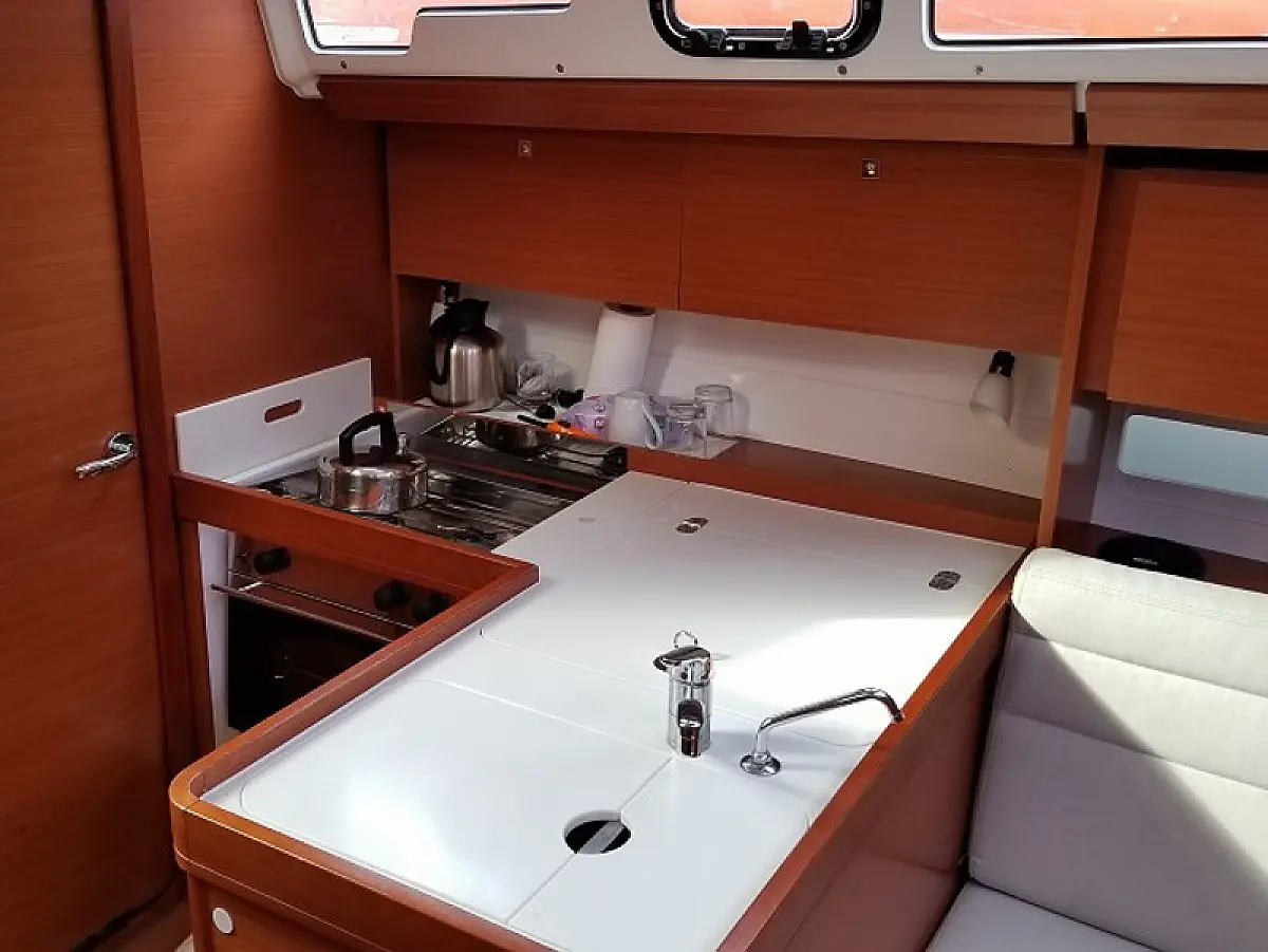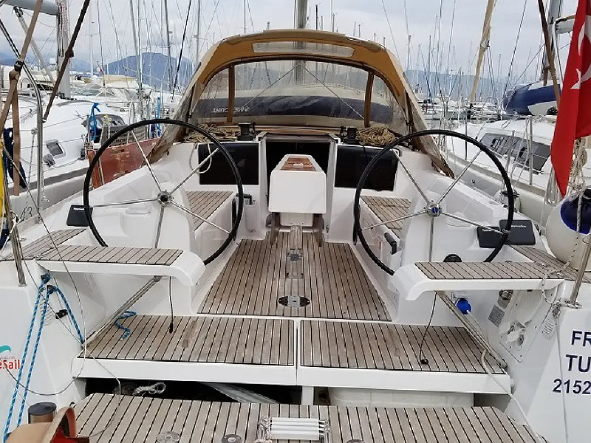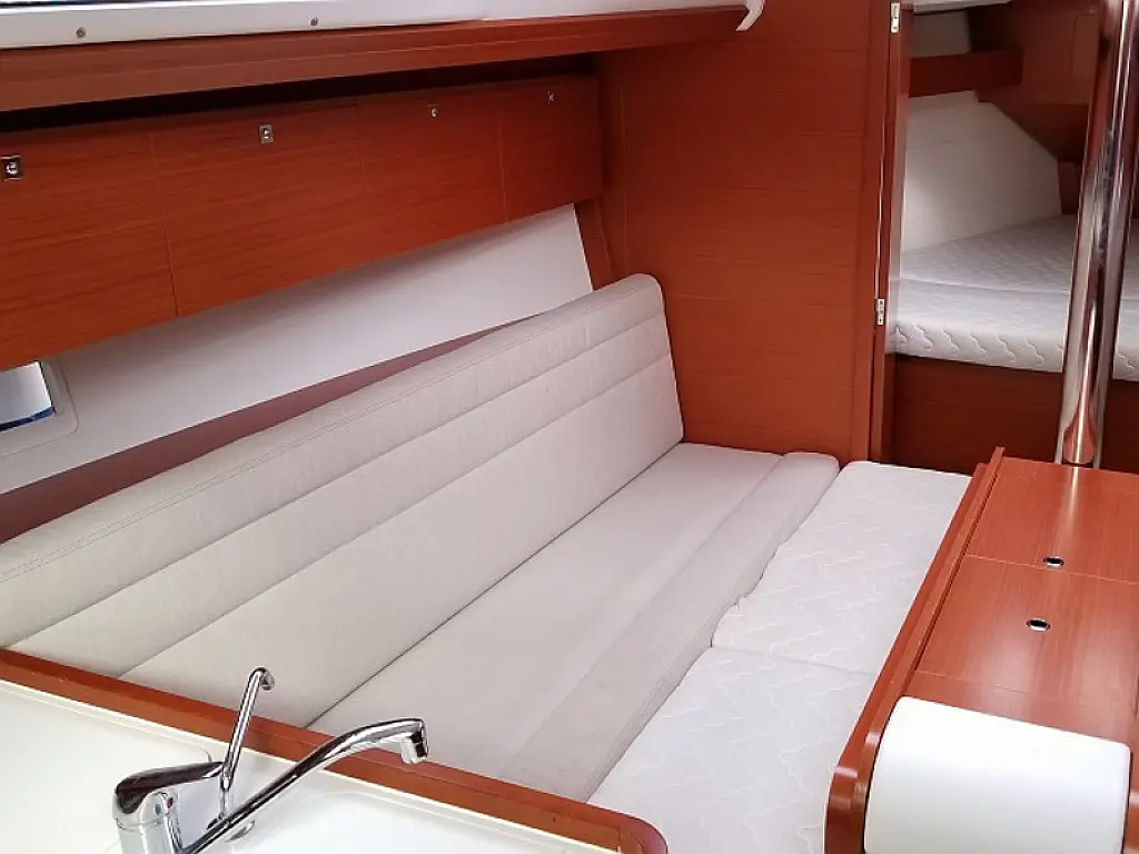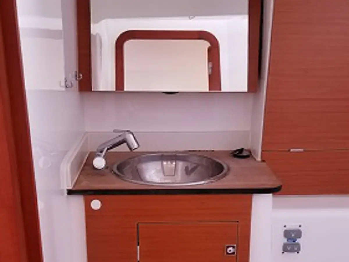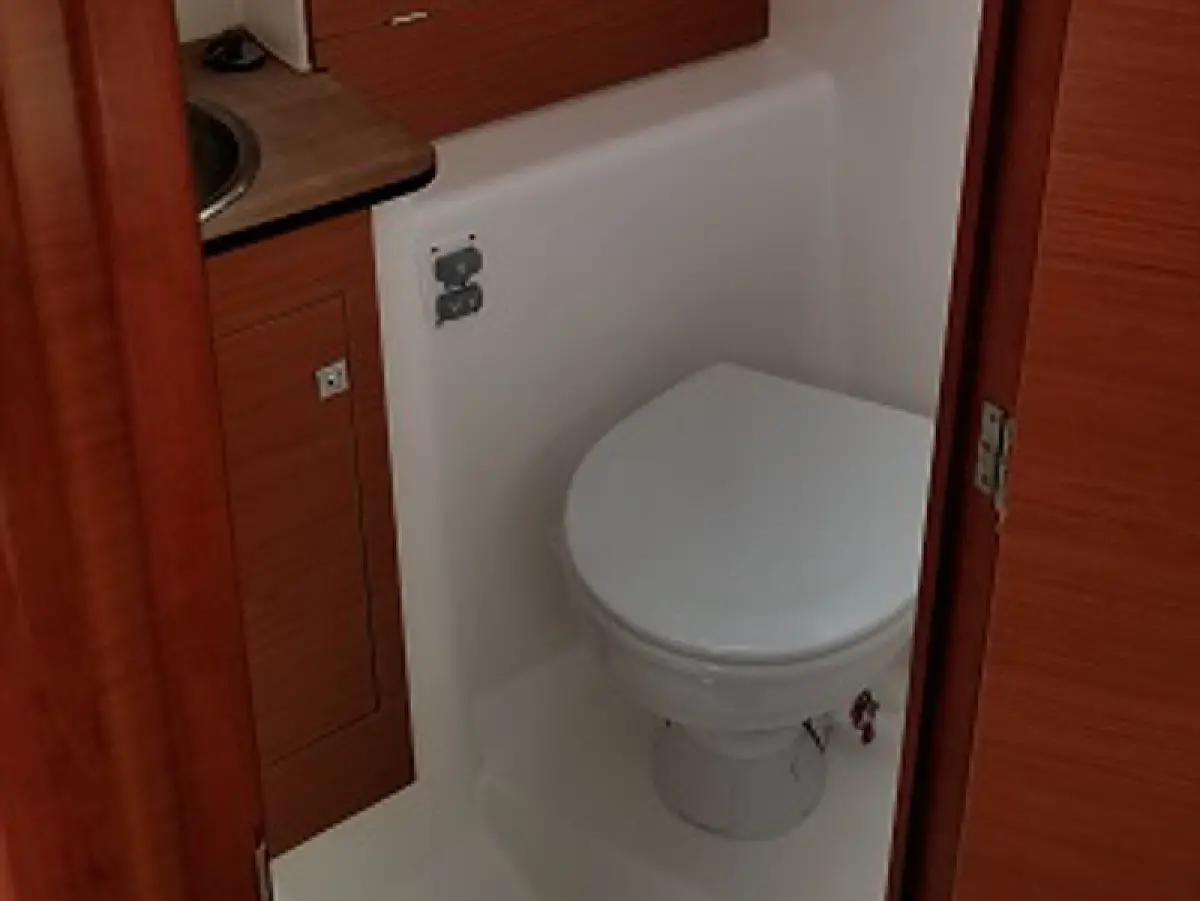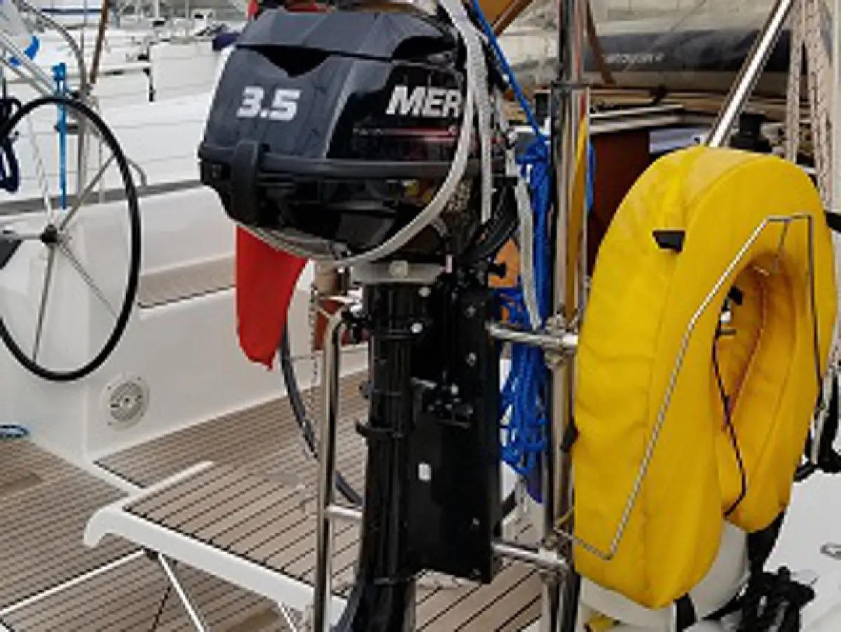 Refrigerator, Dinghy, Bimini, Cockpit cushions, Electric toilet, Teak Cockpit, Sprayhood, Heating, Outboard engine, Solar Panels, Inverter