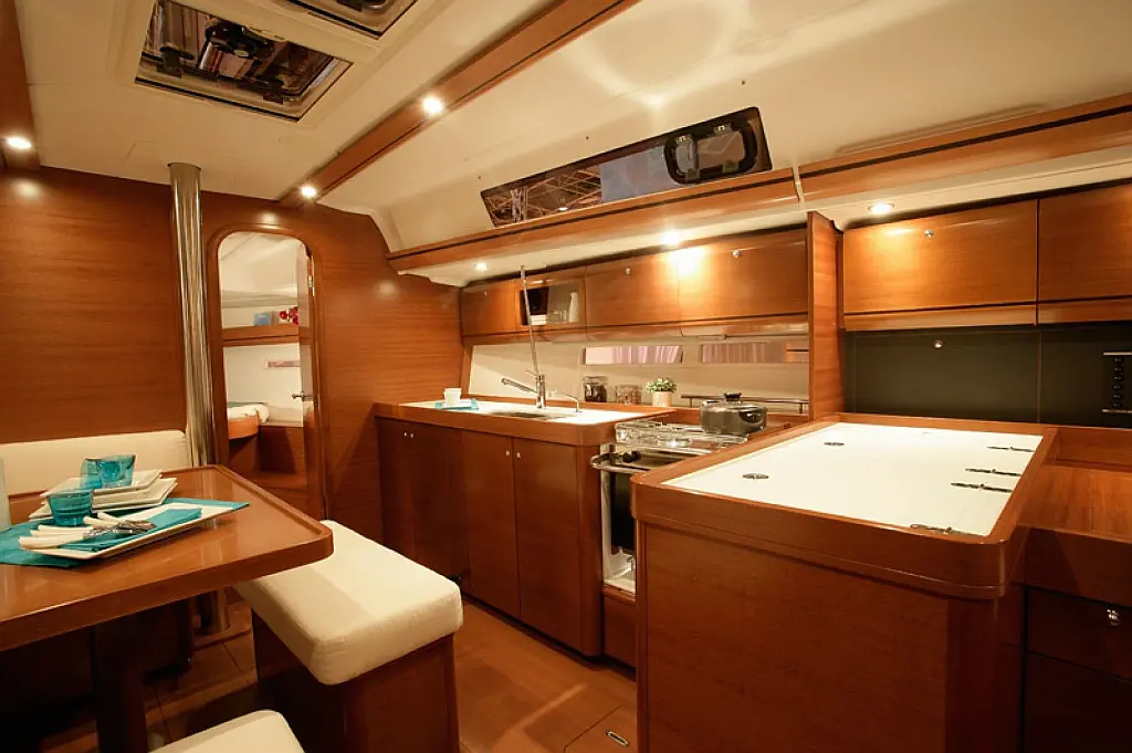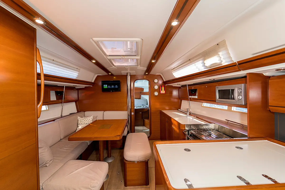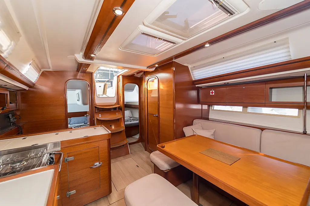 Bimini, Cockpit cushions, Dinghy, Sprayhood, Swimming platform, Outboard engine, Holding tank, Inverter, Solar Panels, Heating, Cockpit speakers, Refrigerator