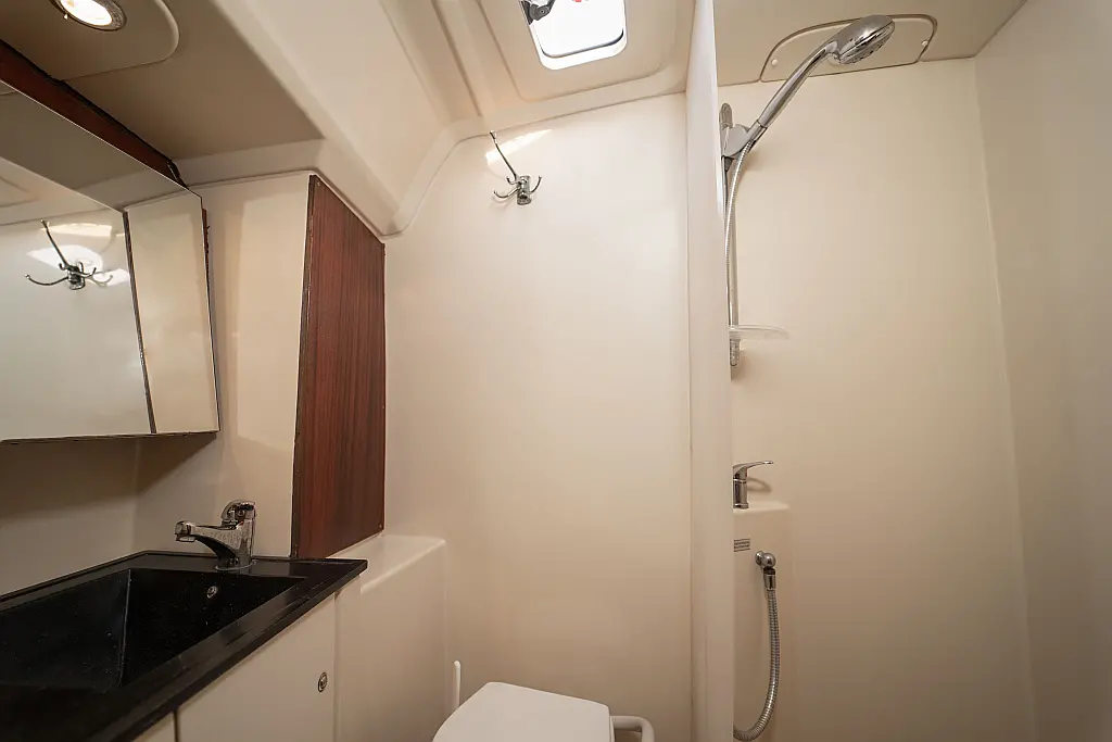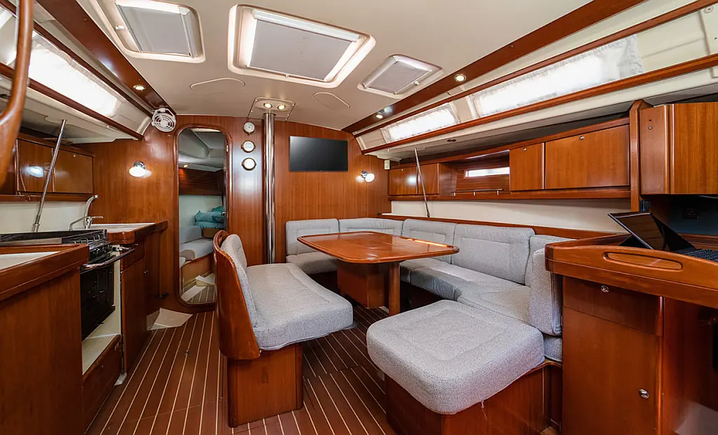 Bimini, Cockpit cushions, Dinghy, Sprayhood, Swimming platform, Outboard engine, Holding tank, Inverter, Solar Panels, Heating, Cockpit speakers, Refrigerator
