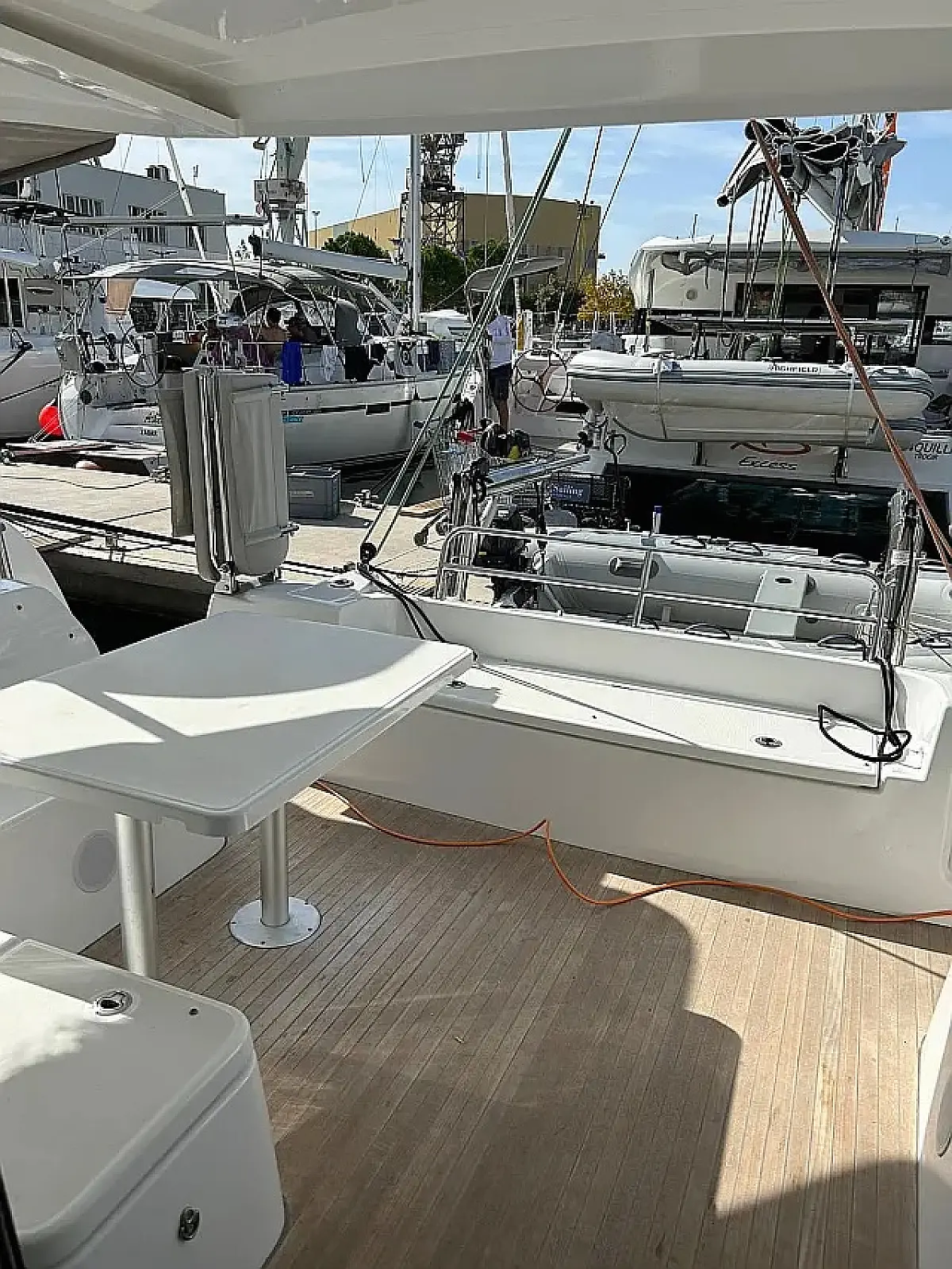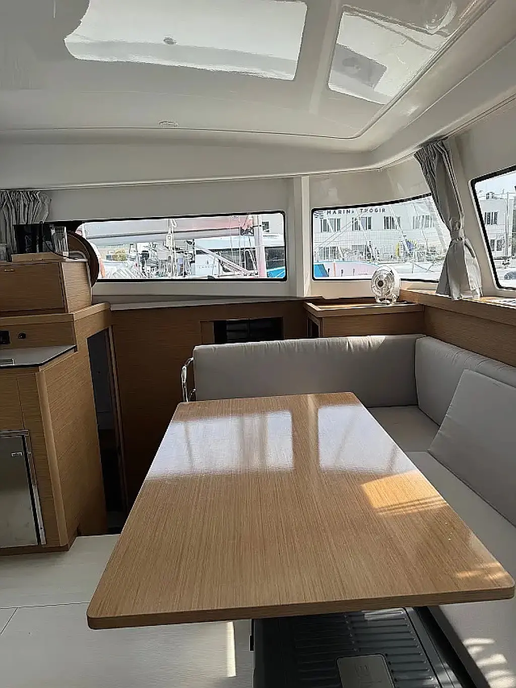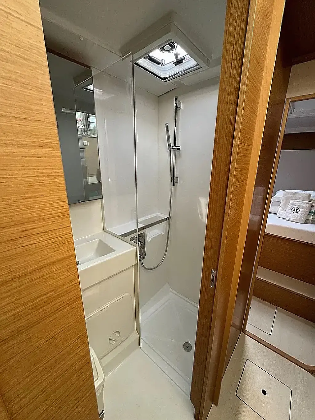 Air condition, Bimini, Cockpit cushions, Cockpit speakers, Dinghy, Coffee maker, Refrigerator, Electric toilet, Generator, Heating, Holding tank, Inverter, Outboard engine, Solar Panels, Wi-Fi & Internet